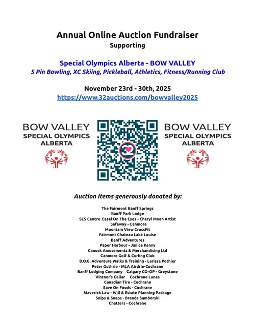 Support Special Olympics Bow Valley by bidding on their silent auction!